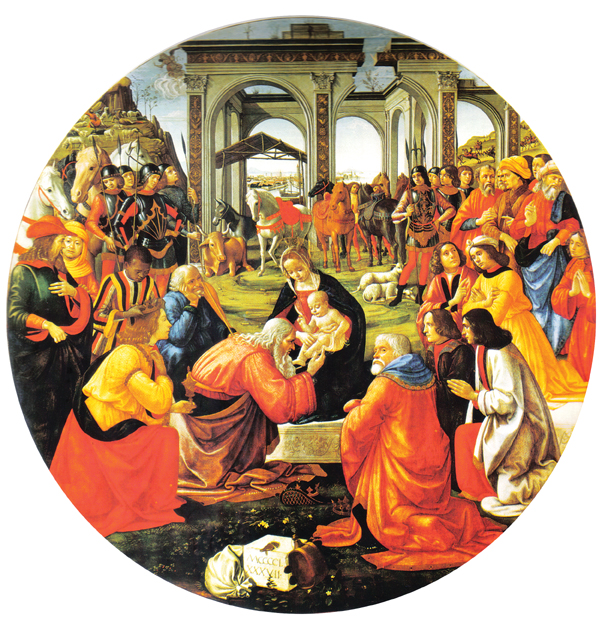 DOMENICO GHIRLANDAJO (1449-1494) - "Adoração dos Magos", Têmpera sobre madeira - 172 cm de diâmetro. Entrou na galeria em 1780